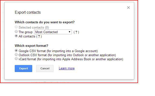 Step 4 : Choose which contacts that you want to export and select the export format to Google CSV format then click "Export".
