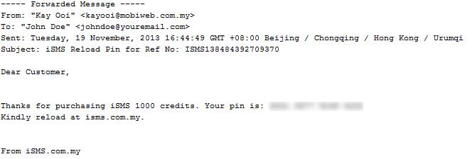 Step 1: Check your email (inbox / spam / junk folder) - for first time purchase user. iSMS will sent the reload pin to your email within 24 hours.